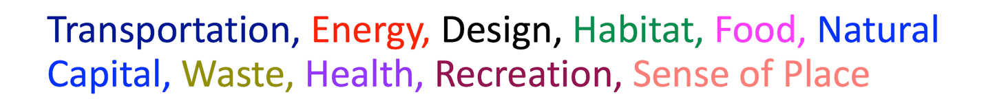 Because Themes are concrete and relate to a specific area of activity, they make sustainability easy to understand. Yet they are broad enough to bring together people to discuss common areas of interest (see photo below). For example, an Ottawa, Canada, workshop on Health featured discussions on: pollution, urban trees, safe streets, parks for the handicapped, and indoor air quality.